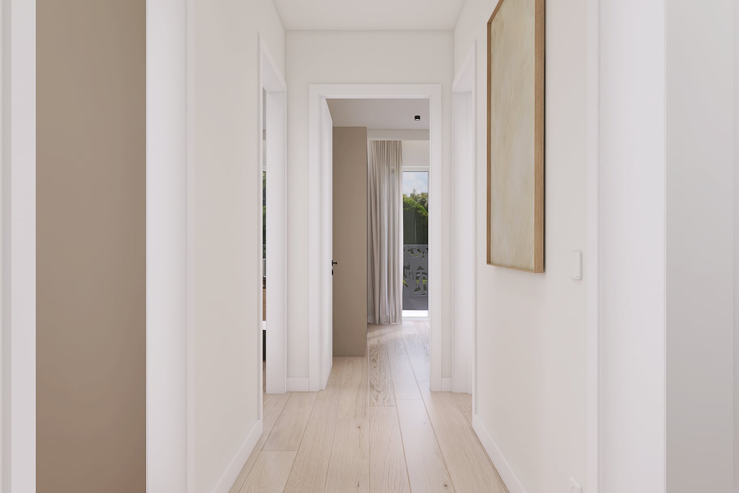 Parkettböden in allen Wohnräumen, weiß lackierte Türen, Kunststofffenster mit 3-fach-Verglasung